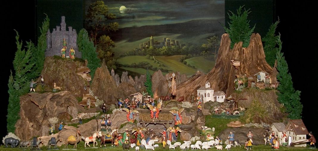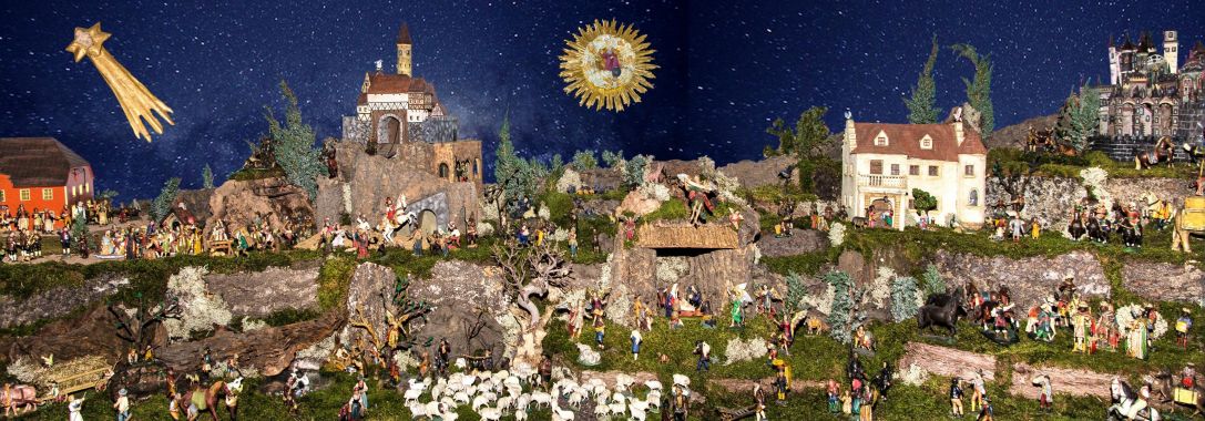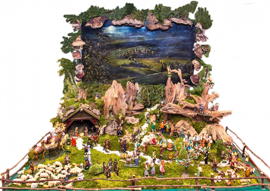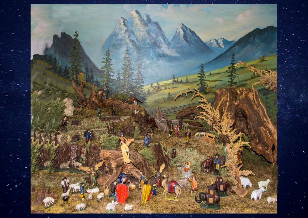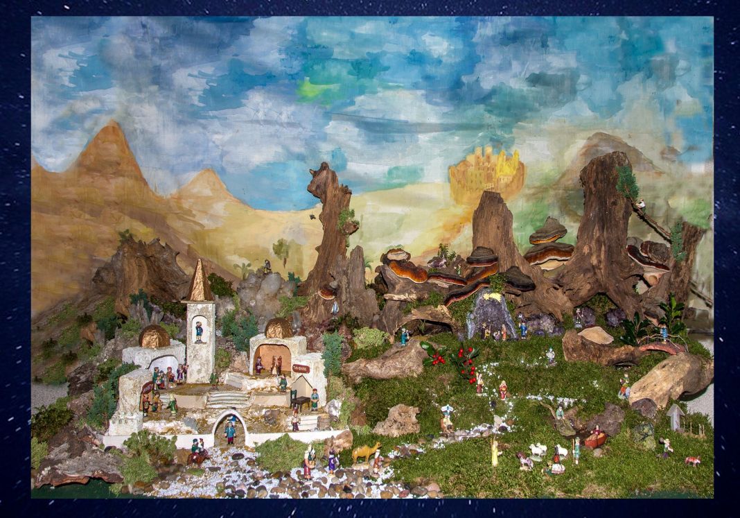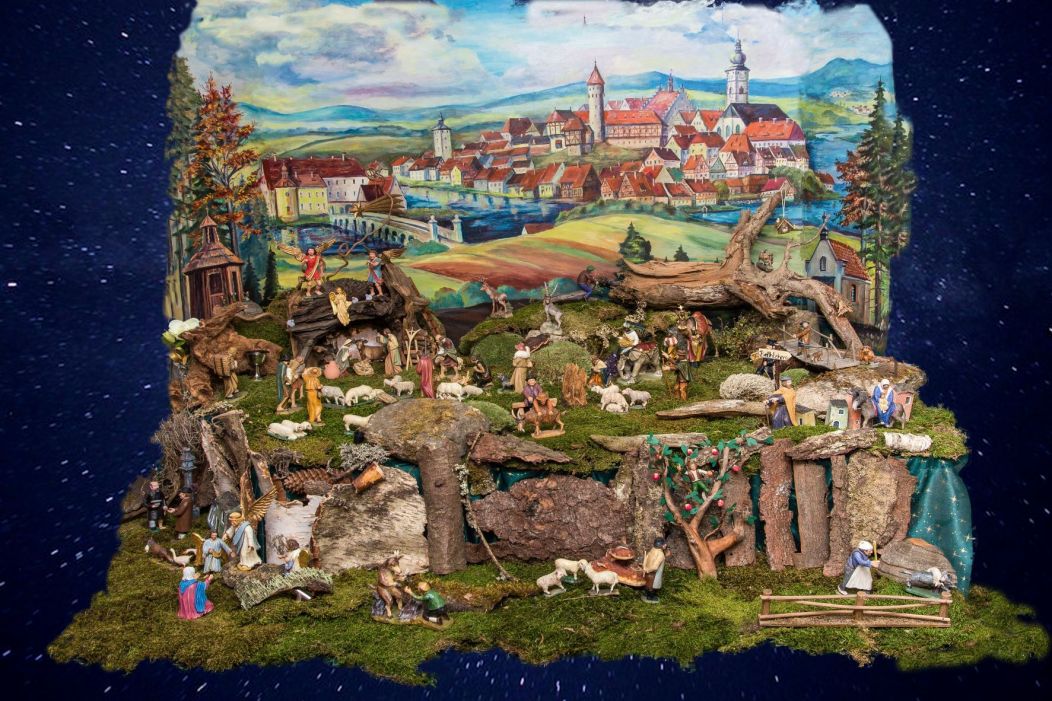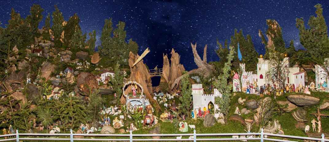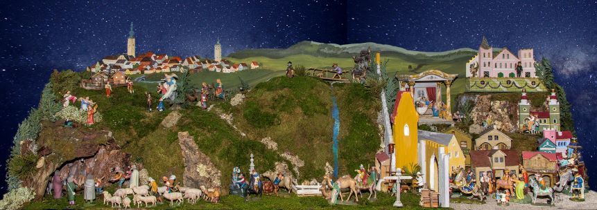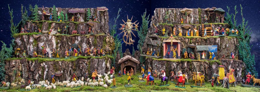 Die Simultan-Krippe besteht aus mehreren biblischen Szenen, die harmonisch in die Landschaft eingefügt wurden.