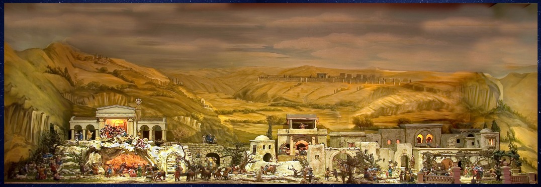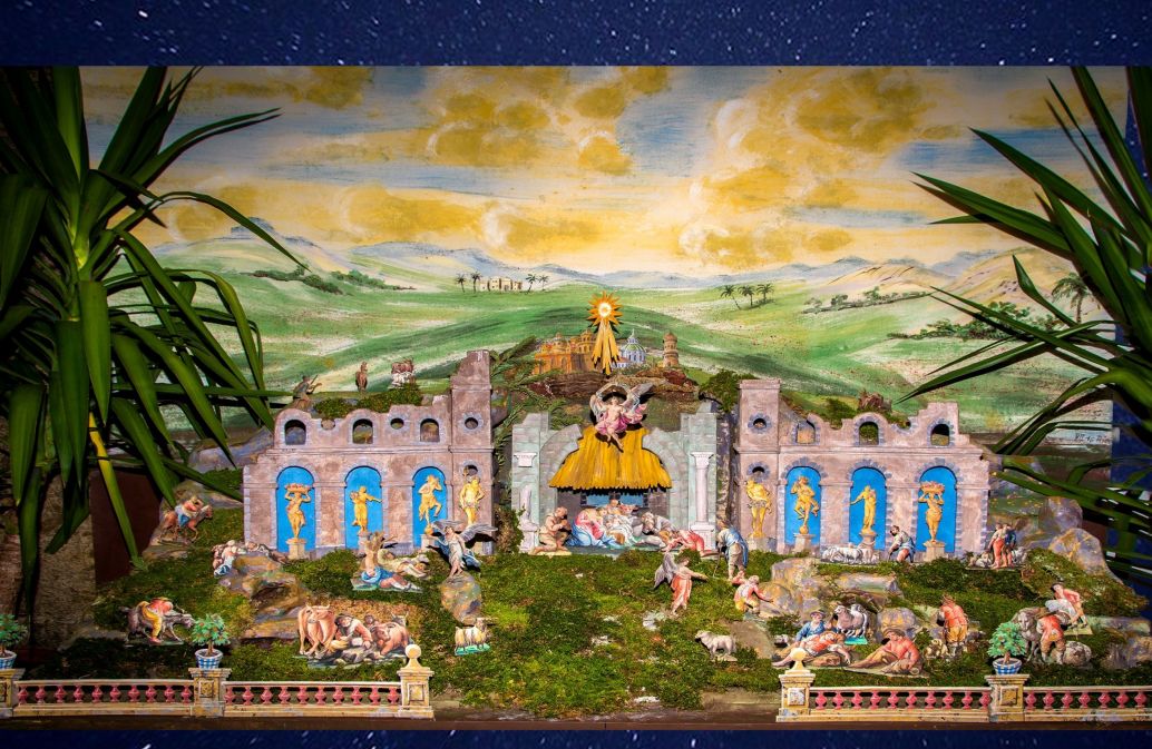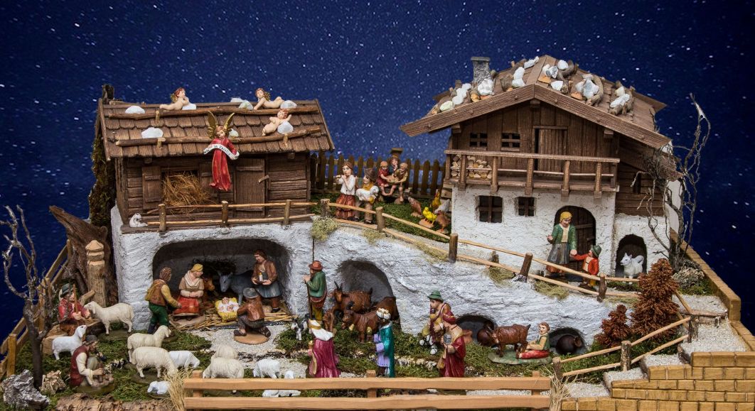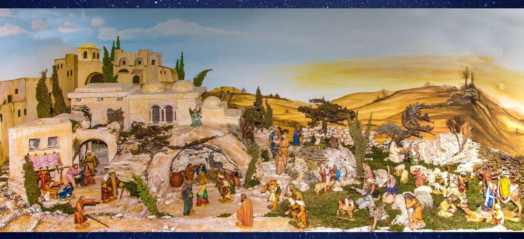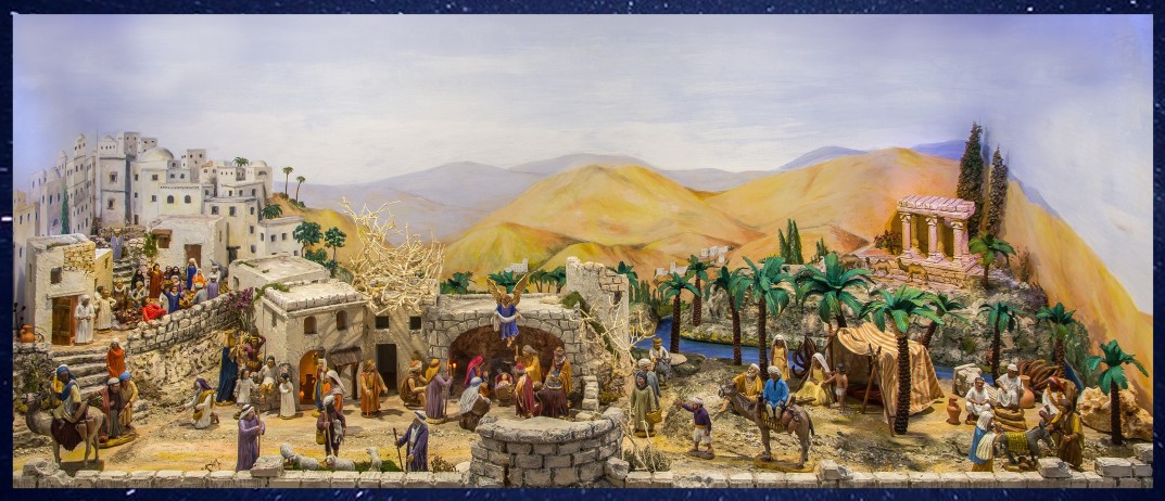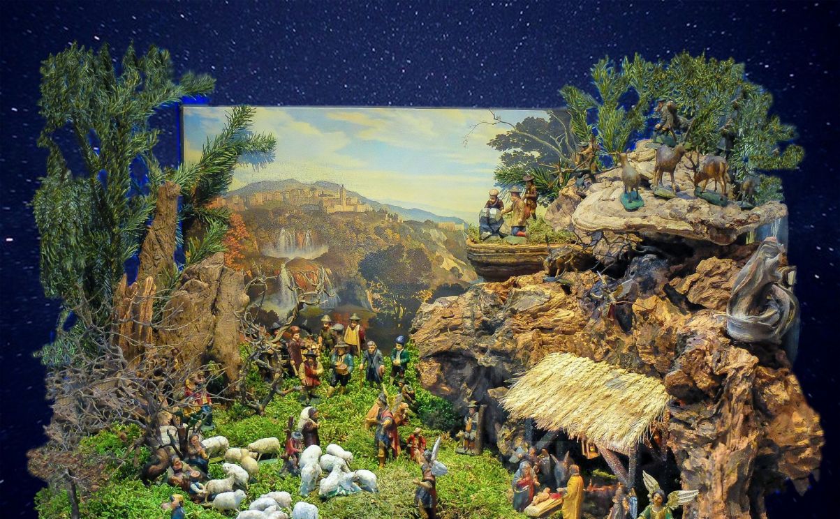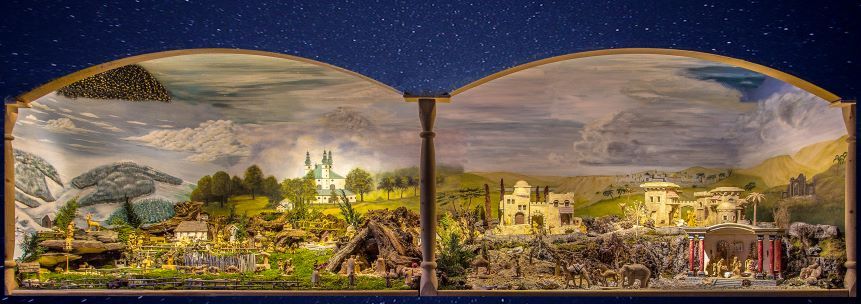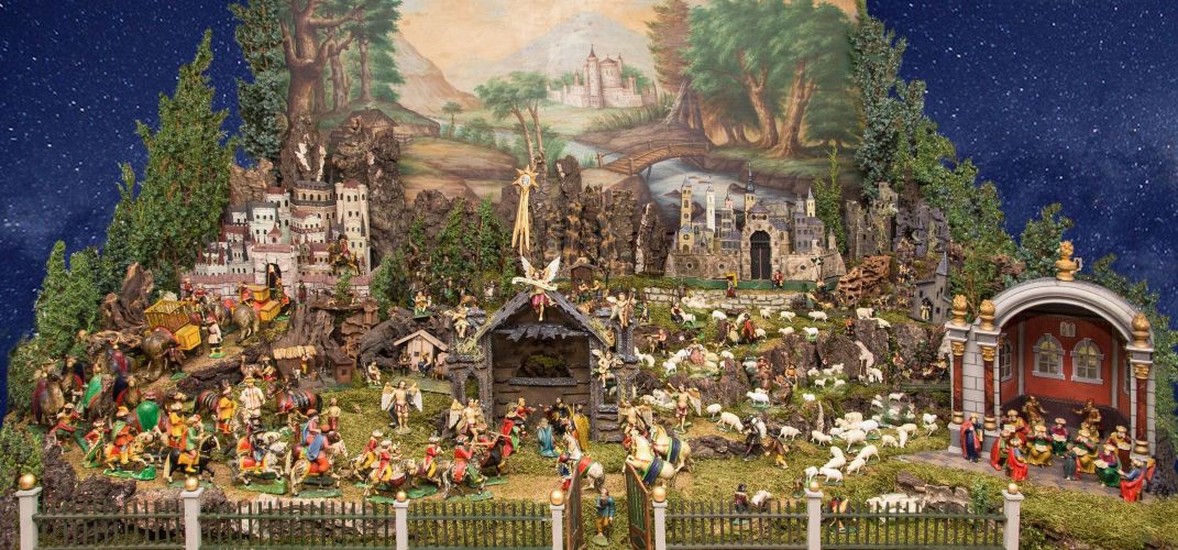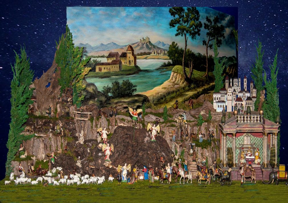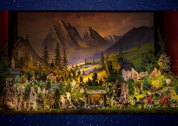 Die Simultan-Krippe besteht aus mehreren biblischen Szenen, die harmonisch in die Landschaft eingefügt wurden.