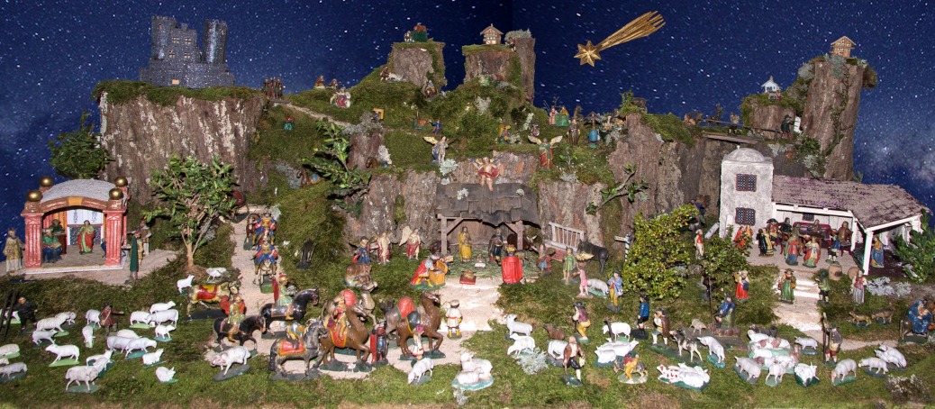 Als seinerzeit die Schön-Krippe von den Krippenfreunden gekauft wurde, waren alle ca. 400 Figuren in einer Krippe zusammen aufgestellt.