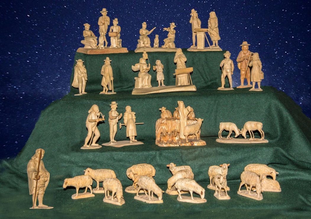 Diese Krippe wurde fast ausschließlich von Familienmitgliedern geschaffen, die auch die Figuren schnitzten.